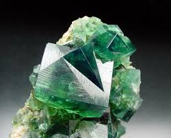 latim fluere devido a sua fácil fusão; é composto basicamente de fluoreto de cálcio (CaF2) usualmente encontrada em cristais cúbicos (sendo frequente também o hábito octaédrico), transparentes a translúcidos, de cor muito variável, com clivagem perfeita. Apresenta brilho vítreo, densidade relativa 3.18. É o quarto termo da Escala de Mohs de dureza. São frequentes maclas de interpenetração.